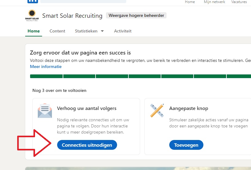 Ok, je hebt netjes je logo, banner en beschrijving ingevuld. Nu wordt het tijd om daadwerkelijk mensen uit te nodigen om je bedrijfspagina te gaan volgen. Zodra je organisatie bekender binnen je doelgroep is zullen mensen uit zich je pagina gaan volgen. Maar zeker de eerste maanden wil je actief mensen daarvoor uitnodigen.